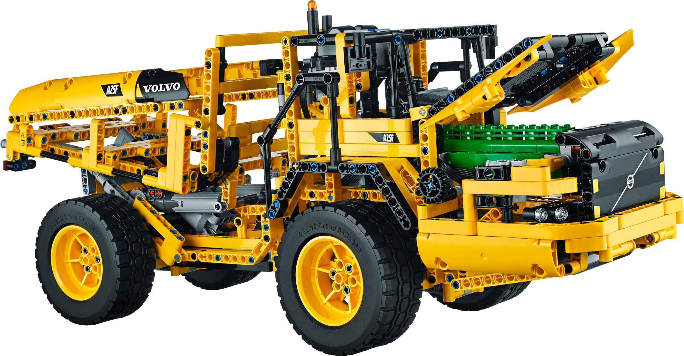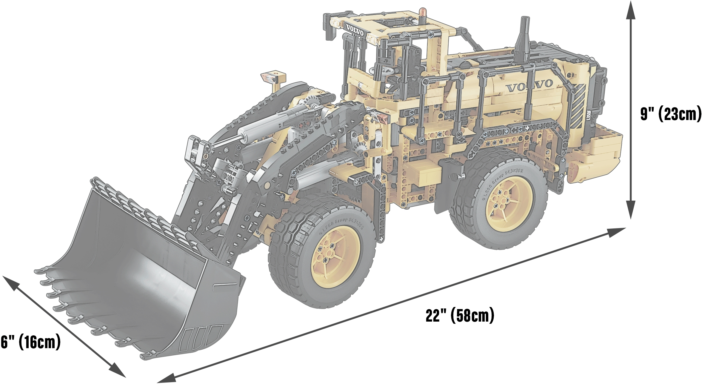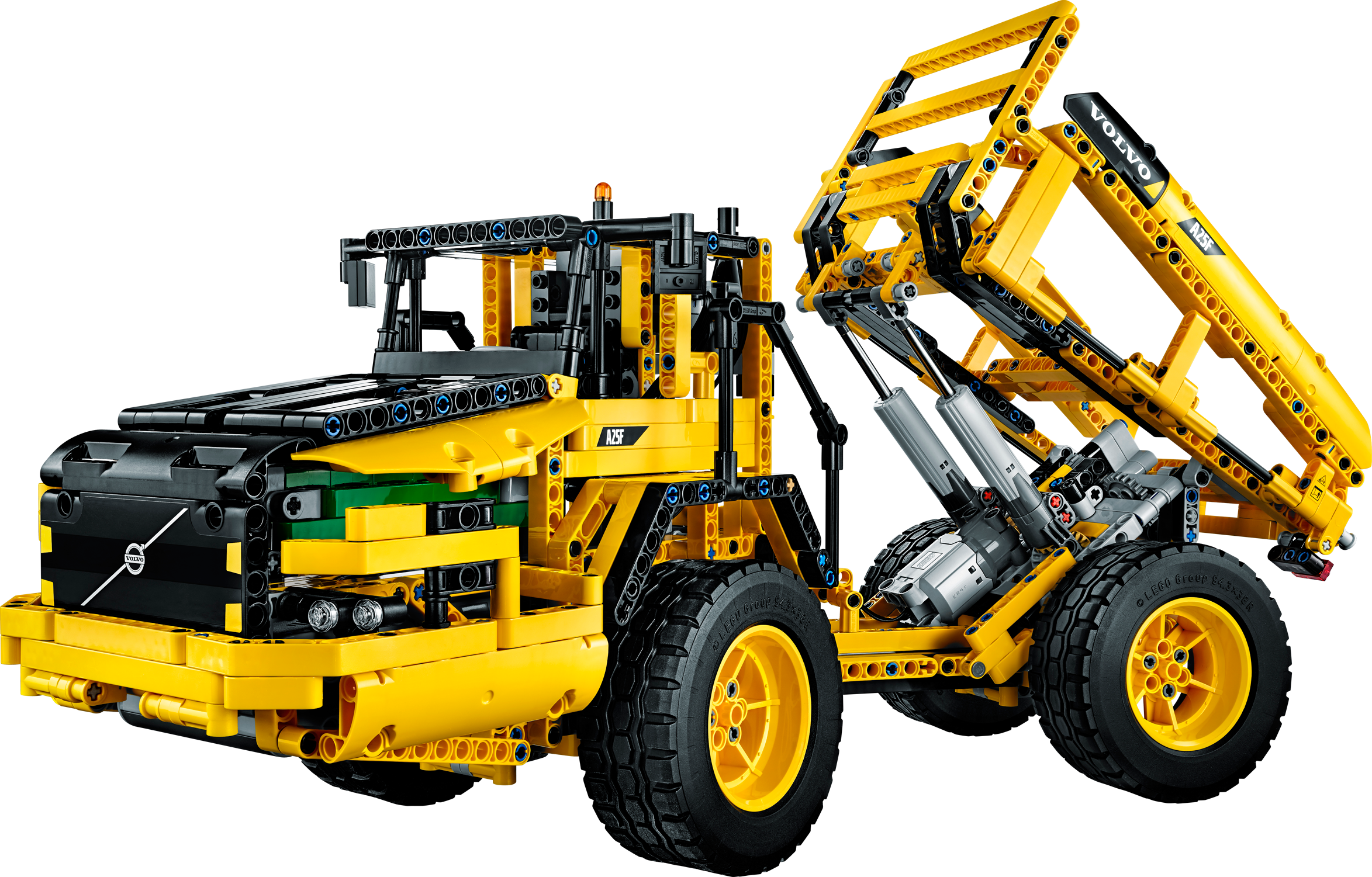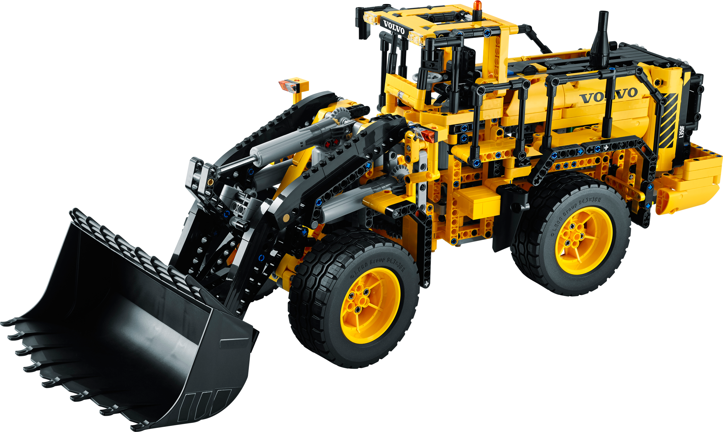 Get up close to the giant Volvo L350F! Climb aboard the Volvo L350F! Developed in partnership with Volvo Construction Equipment, this meticulously detailed, fully remote-controlled model has all the features of Volvo’s largest real-life high-tech wheel loader. Activate the Power Functions motors, turn the articulated servo steering and watch the detailed 6-cylinder engine pistons and fan move as you drive it into position. Then it’s time to lift the arm and tip the giant bucket—the largest element we’ve ever produced for a LEGO® Technic model! When you feel like another building challenge, rebuild it into the tough Volvo A25F articulated hauler.Remote-control replica of the powerful Volvo L350F wheel loaderFeatures a detailed 6-cylinder Volvo-green engine with moving pistons and fan, articulated servo steering, working lift arm, and a massive, tipping bucketActivate the double remote-controlled Power Functions motors for powerful, simultaneous driving and digging action – just like the real machine!Includes the following LEGO® Power Functions components: a servo motor, an XL-motor, a large motor, a medium motor, a battery box, 2 remote controls and 2 infrared receiversClimb aboard this powerful high-tech machine!Bucket reaches over 14” (38cm) into the air!2-in-1 model: rebuilds into a Volvo A25F articulated haulerVolvo L350F (with bucket lowered) measures over 9” (23cm) high, 22” (58cm) long and 6” (16cm) wideVolvo A25F measures over 9” (23cm) high, 19” (50cm) long and 6” (17cm) wide