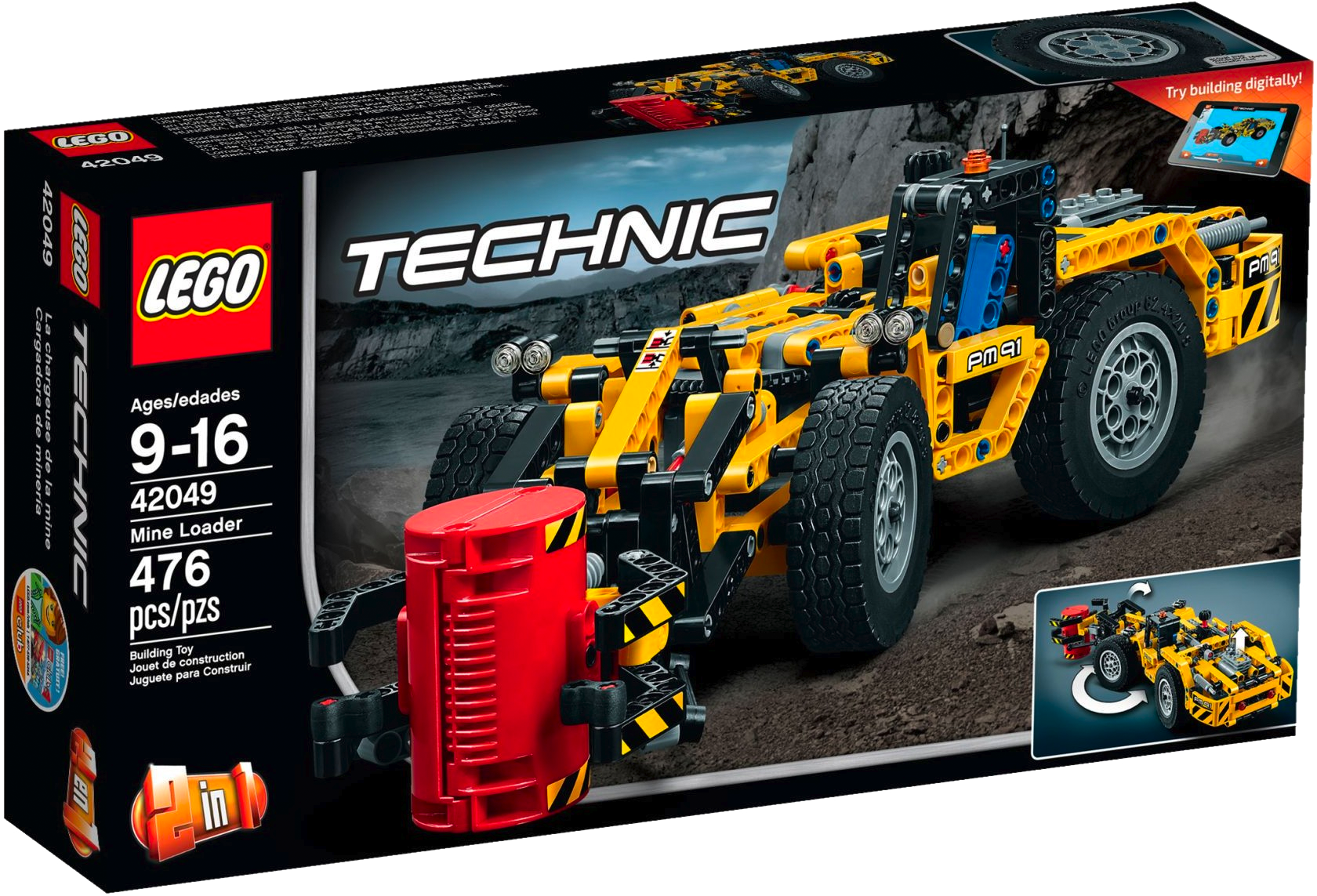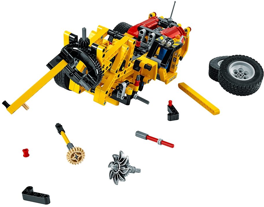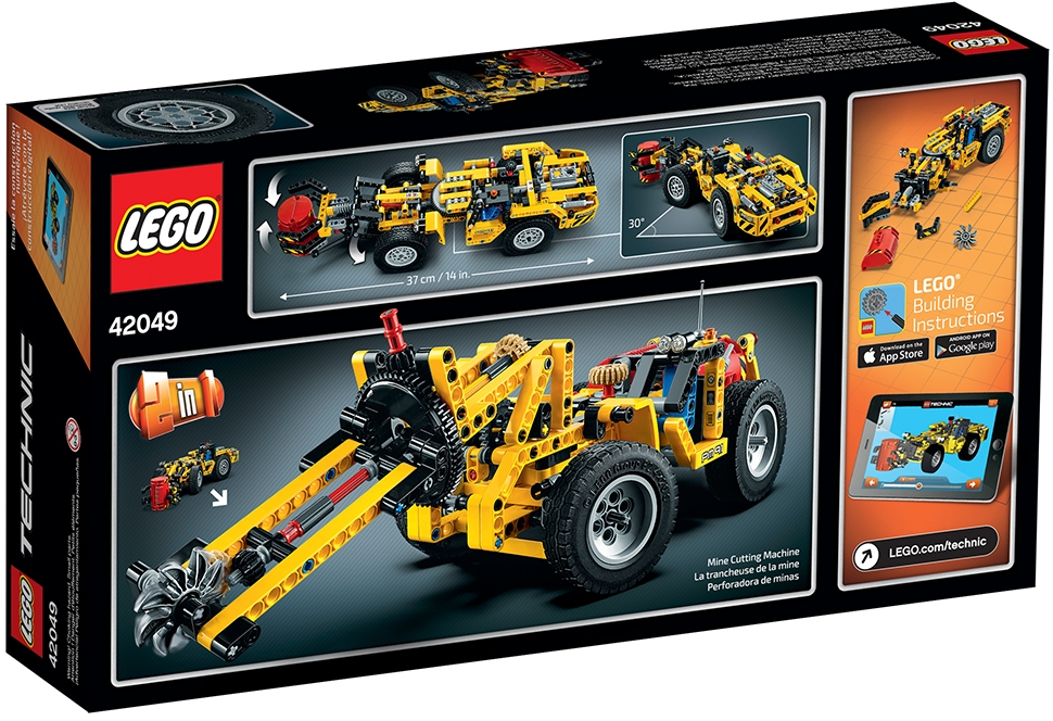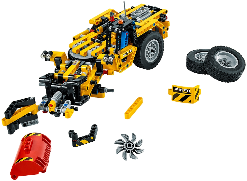 Call in the powerful Mine Loader! Take a ride underground with this rugged 2-in1 vehicle, featuring a classic yellow and black color scheme, detailed engine with moving pistons and spinning fan, and massive wheels with huge tires. Use the articulated steering to move into position, and then activate the versatile grabber to lift and load the heavy cargo. When you’re done shifting heavy loads, rebuild to create an awesome Mine Cutting Machine! Interactive, 3D Digital LEGO® Building Instructions app available online, for both models! Features a versatile working grabber, articulated central steering mechanism, detailed engine with moving pistons and spinning fan, large wheels with huge tires, and a detailed driver’s cab with orange warning beacon. Check out the classic yellow and black color scheme. Grab the red barrel and load it up. This LEGO® Technic model is designed to provide an immersive and rewarding building experience. Appropriate for children aged 9 to 16. Interactive, 3D Digital LEGO® Building Instructions app available online for both A and B models. 2-in-1 model: rebuilds into a Mine Cutting Machine. Mine Loader measures over 3” (9cm) high, 14” (37cm) long and 4” (11cm) wide. Mine Cutting Machine measures over 4” (11cm) high, 15” (39cm) long and 5” (13cm) wide.