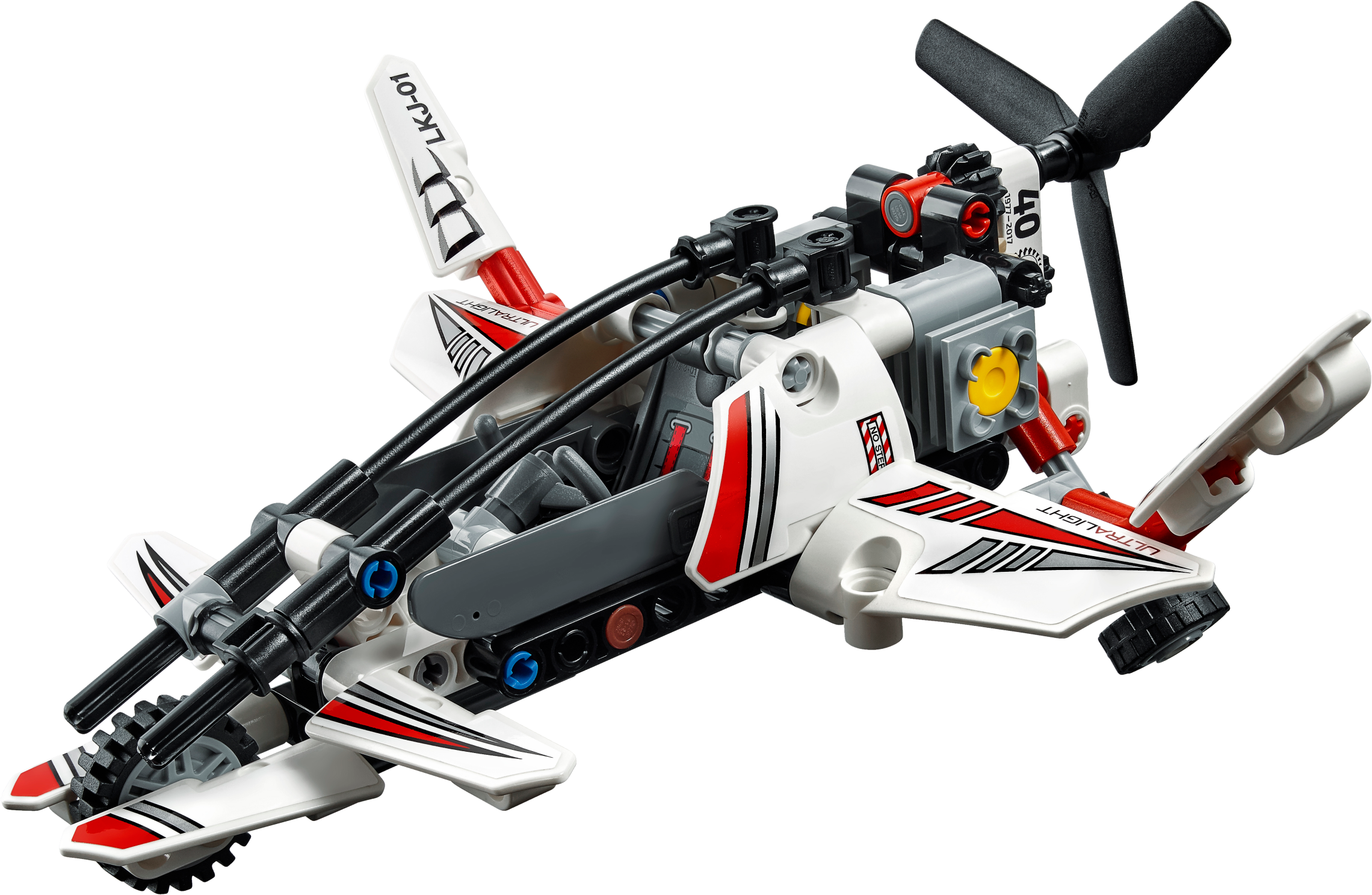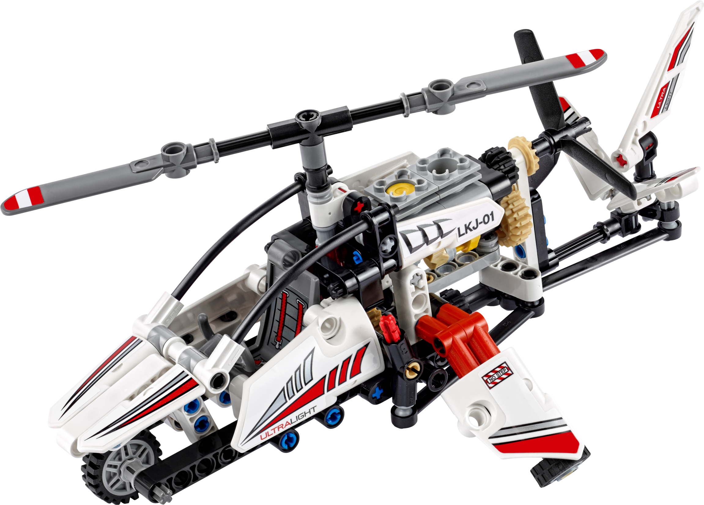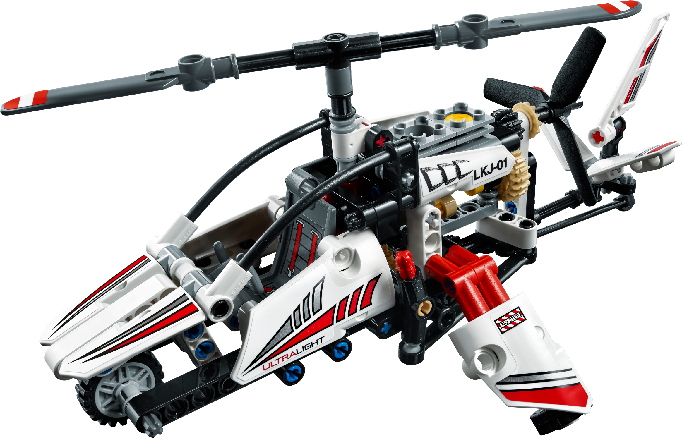 Enjoy aerial adventures with this aerodynamic one-man helicopter, featuring spinning main and tail rotors, controllable tail rudder, detailed engine with moving pistons, open cockpit with detailed seat, and a white, red and black color scheme with a selection of stickers for an authentic helicopter look. This robust 2-in-1 LEGO® Technic model can be rebuilt to create an Experimental Aircraft, providing a double build-and-play experience. Both models can be built by following the free interactive, 3D digital LEGO Building Instructions app. Features a high-tech aerodynamic design, open cockpit with detailed seat, spinning main and tail rotors, controllable tail rudder, and a detailed engine with moving pistons. Check out the white, red and black color scheme with cool stickers. Spin the gearwheel and see the rotors and engine spring to life. Move the joystick to operate the tail rudder. A uniquely decorated LEGO® Technic 40th Anniversary brick is included with this model. This LEGO® Technic model is designed to provide an immersive and rewarding building experience. This set offers an age-appropriate build-and-play experience for ages 8-14. Interactive, 3D digital LEGO® Building Instructions app available online for both A and B models. Ask your parents’ permission. 2-in-1 model: rebuilds into an Experimental Aircraft. Ultralight Helicopter measures over 4” (12cm) high, 9” (25cm) long and 7” (18cm) wide. Experimental Aircraft measures over 3” (9cm) high, 7” (18cm) long and 7” (19cm) wide.