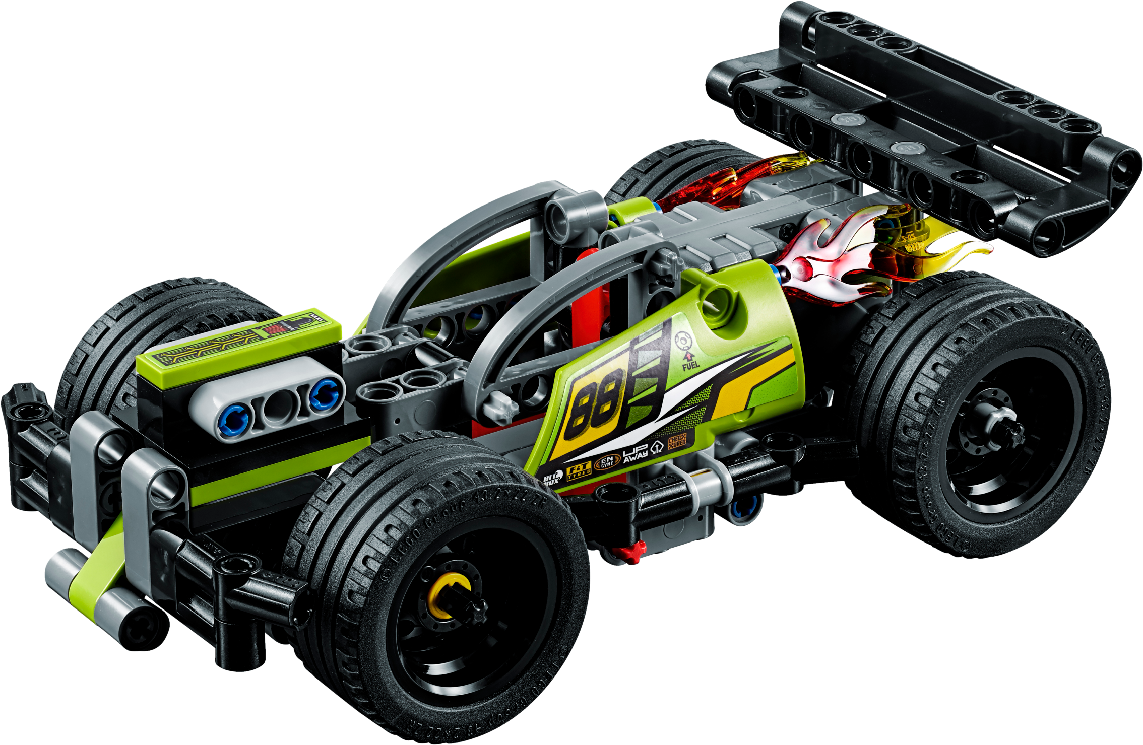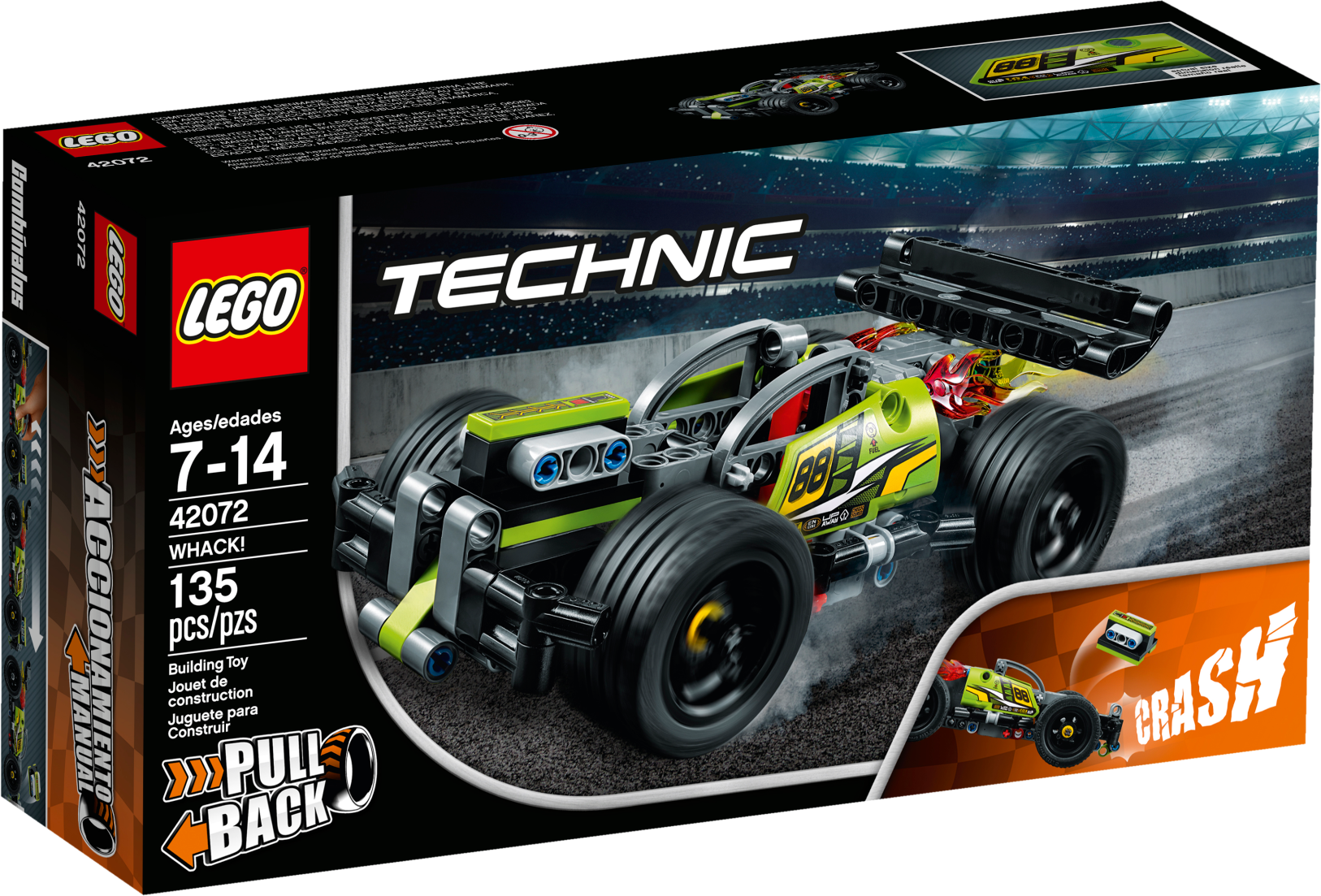 Experience the amazing power and acceleration of this high-speed LEGO® WHACK! model, featuring a lime-green, red and gray color scheme with racing stickers, sturdy front bumper, large rear spoiler and wide black rims with low profile tires. This advanced building set is equipped with a pull-back motor and a new-for-December-2017 engine pop-out function, which is activated on impact. Combine with the 42073 BASH! pull-back model for extended play possibilities or to create the WHACK! ‘N' BASH! combi model. Features a powerful pull-back motor, sturdy front bumper, large rear spoiler, wide black rims with low profile tires and an engine pop-out function, which is activated on impact. Check out the lime-green, red and gray color scheme with cool racing stickers. Bring on the 42073 BASH! and let the race begin! Activate the pull-back motor to launch the high-speed WHACK! New-for-December-2017. See the engine fly out of the vehicle body on impact… WHACK! This LEGO® Technic advanced building set is designed to provide an immersive and rewarding building experience. Combine with the 42073 BASH! to create an awesome WHACK! ‘N’ BASH! combi model with 2 pop-out engines! Suitable for ages 7-14. WHACK! measures over 2” (6cm) high, 6” (17cm) long and 3” (9cm) wide. Combi WHACK! ‘N' BASH! model measures over 3” (9cm) high, 7” (20cm) long and 3” (10cm) wide.