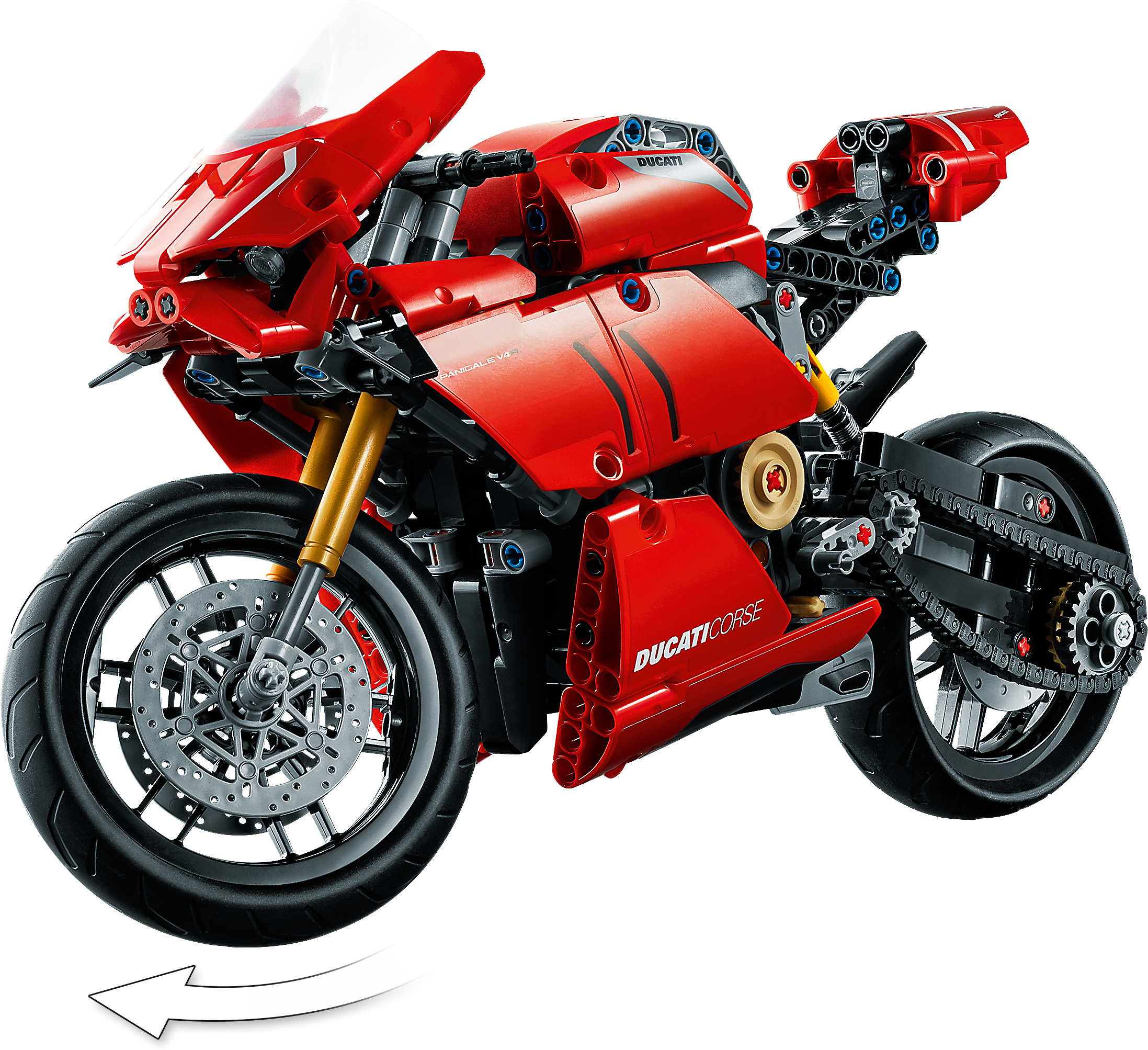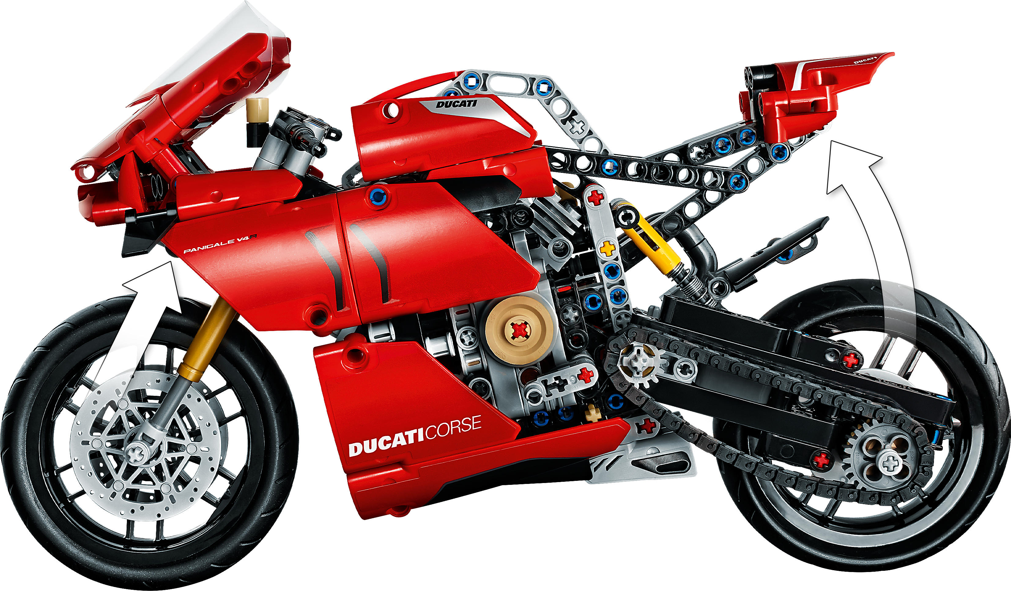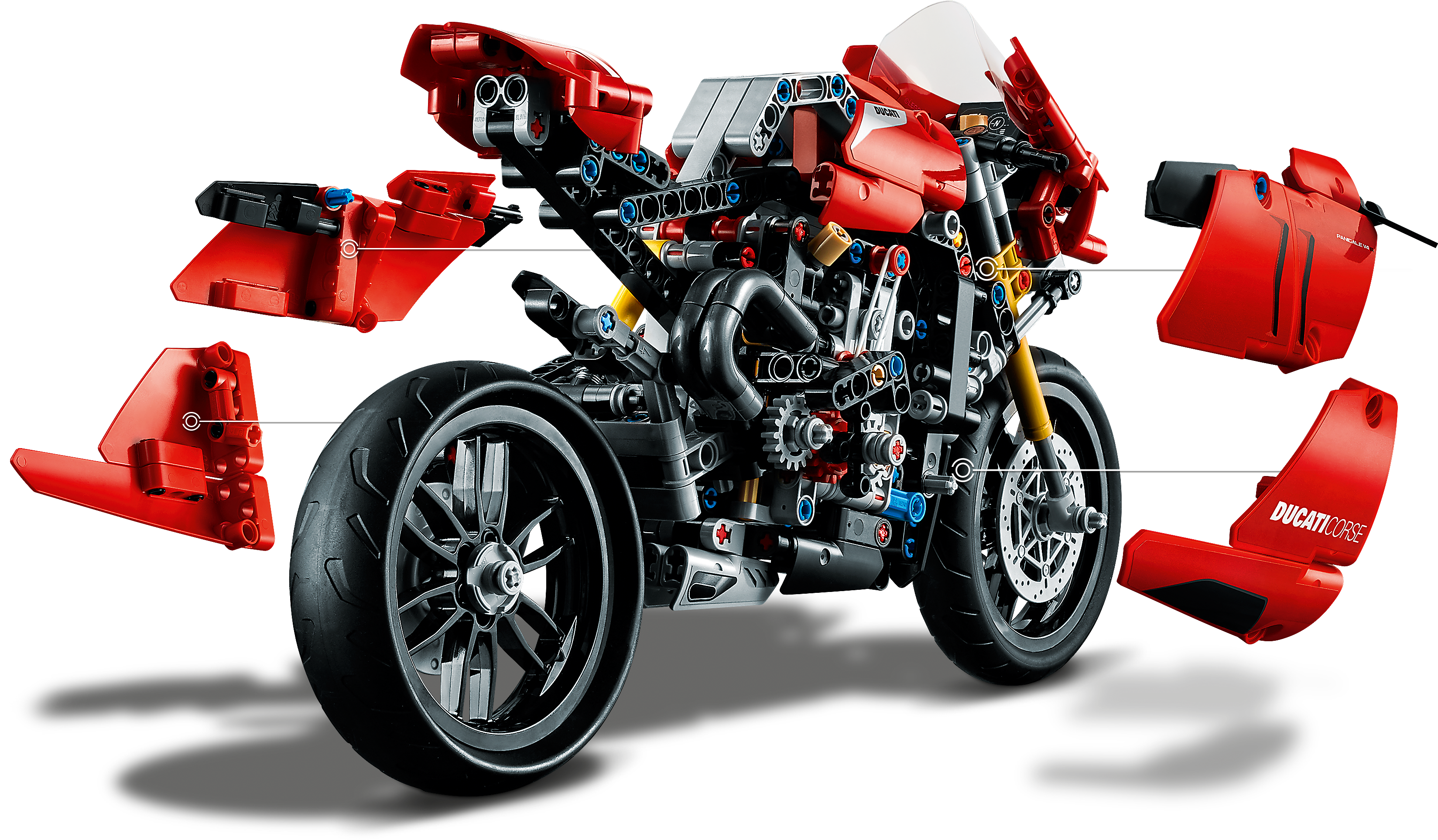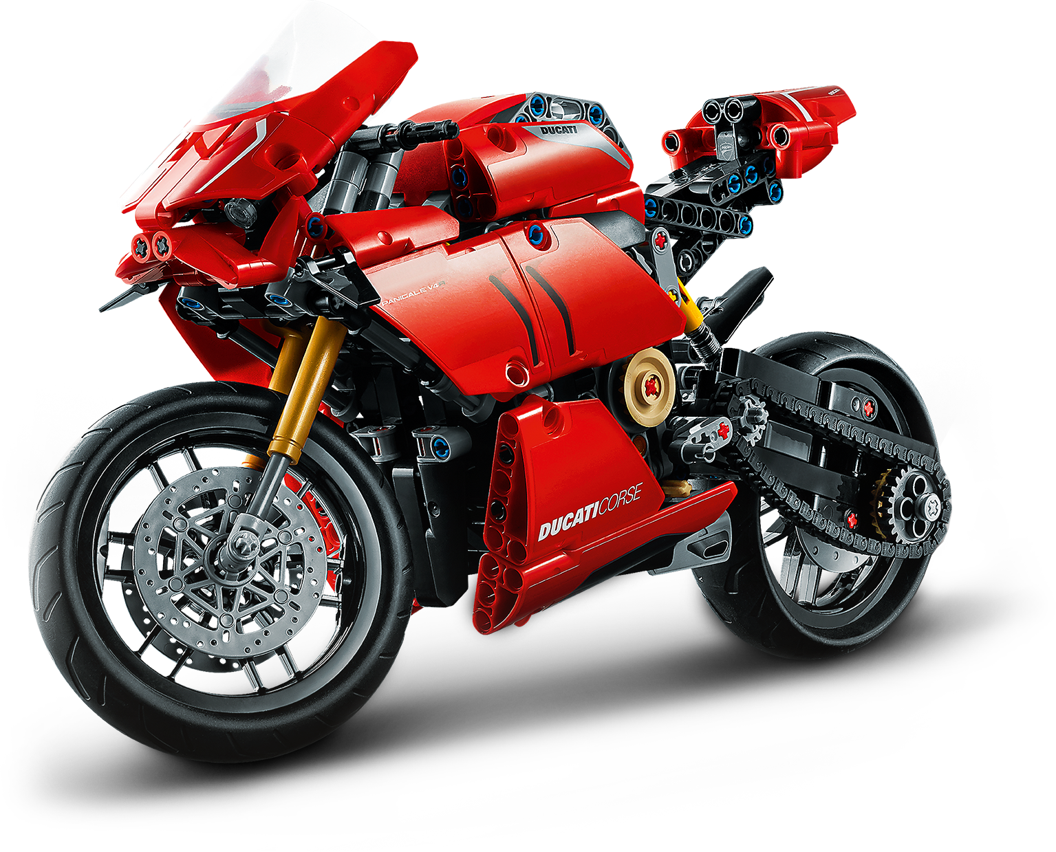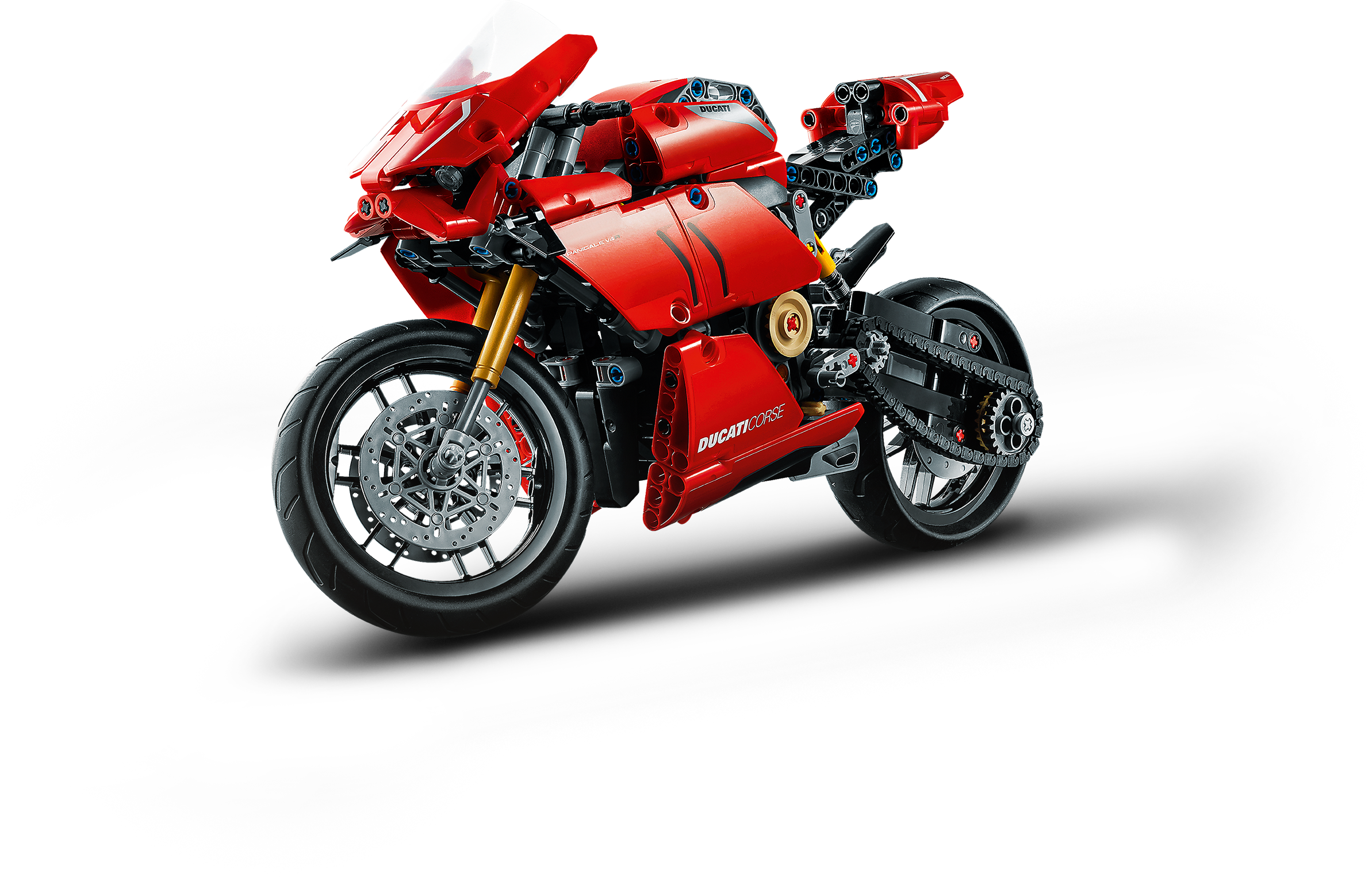 Style, sophistication, performance. With breathtaking looks, this LEGO® Technic™ 42107 Ducati Panigale V4 R captures the spirit and design of the original. It’s the first model motorcycle in LEGO Technic history to include a gearbox for exploring different speeds and techniques. Other amazing features include steering, front and rear suspension for realistic movement, plus front and rear disc brakes.Amazing details capture the spirit of DucatiDucati fans will appreciate the attention-to-detail in this amazing motorcycle replica. A kickstand, exhaust pipe, windshield and dashboard add the little details that make this model toy so true to the full-size version. And of course, the classic red color scheme is sure to quicken the pulse of any Ducati fan.Build and learn with LEGO Technic model toysAs part of the LEGO Technic universe, this motorcycle model kit provides an immersive and rewarding building experience. With realistic features, it introduces builders to the world of engineering, as they discover how gear mechanisms work.A representation of the famous Ducati Panigale V4 R to build, explore and display. LEGO® Technic™ fans and motorcycle enthusiasts will love this stunning building challenge.Build your own Ducati Panigale V4 R to gain a unique insight into the features and functions that make up this iconic motorcycle. Also includes a 2-speed gear-box – a first for LEGO® Technic™ motorcycles.Recreate the thrill of owning a Ducati Panigale V4 R, with front and rear suspension for realistic model movement. The classic red color scheme brings the motorcycle to life, with true Italian flair.Looking for the best gifts for motorbike fans? This is a great choice. It’s also a super challenge for LEGO® Technic™ fans aged 10+ who will get a thrill from seeing how a motorcycle works.This eye-catching model (42107) looks stunning on display. Its dimensions have been designed to give a true representation of the real-life model. Measures over 12” (32cm) long, 6” (16cm) high and 3” (8cm) wide.No batteries are needed for this Ducati motorbike toy. Passion, imagination and a desire to discover something new are all you need.It’s easy to get started with this amazing LEGO® set. Just open the box and you’ll find easy-to-follow instructions so building the Ducati toy motorcycle can begin straightaway.LEGO® Technic™ engineering toys are designed to provide an immersive and rewarding building experience, featuring realistic movement and mechanisms to help kids and adults explore the world of engineering.Quality is important. So, it’s good to know LEGO® building kits meet the highest industry standards ensuring they connect easily every time – it’s been that way since 1958.LEGO® Technic™ plastic model toys are put through their paces. Each one is thoroughly tested to make sure every building toy meets the highest global safety and quality standards.