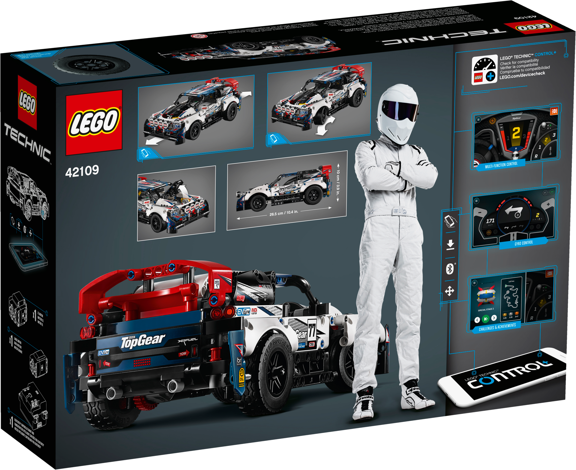 Let race car fans take on a driving challenge with this LEGO® Technic™ app-controlled Top Gear Rally Car (42109). It’s operated via a smart device with 3 screens. Go to LEGO.com/devicecheck for compatible devices.