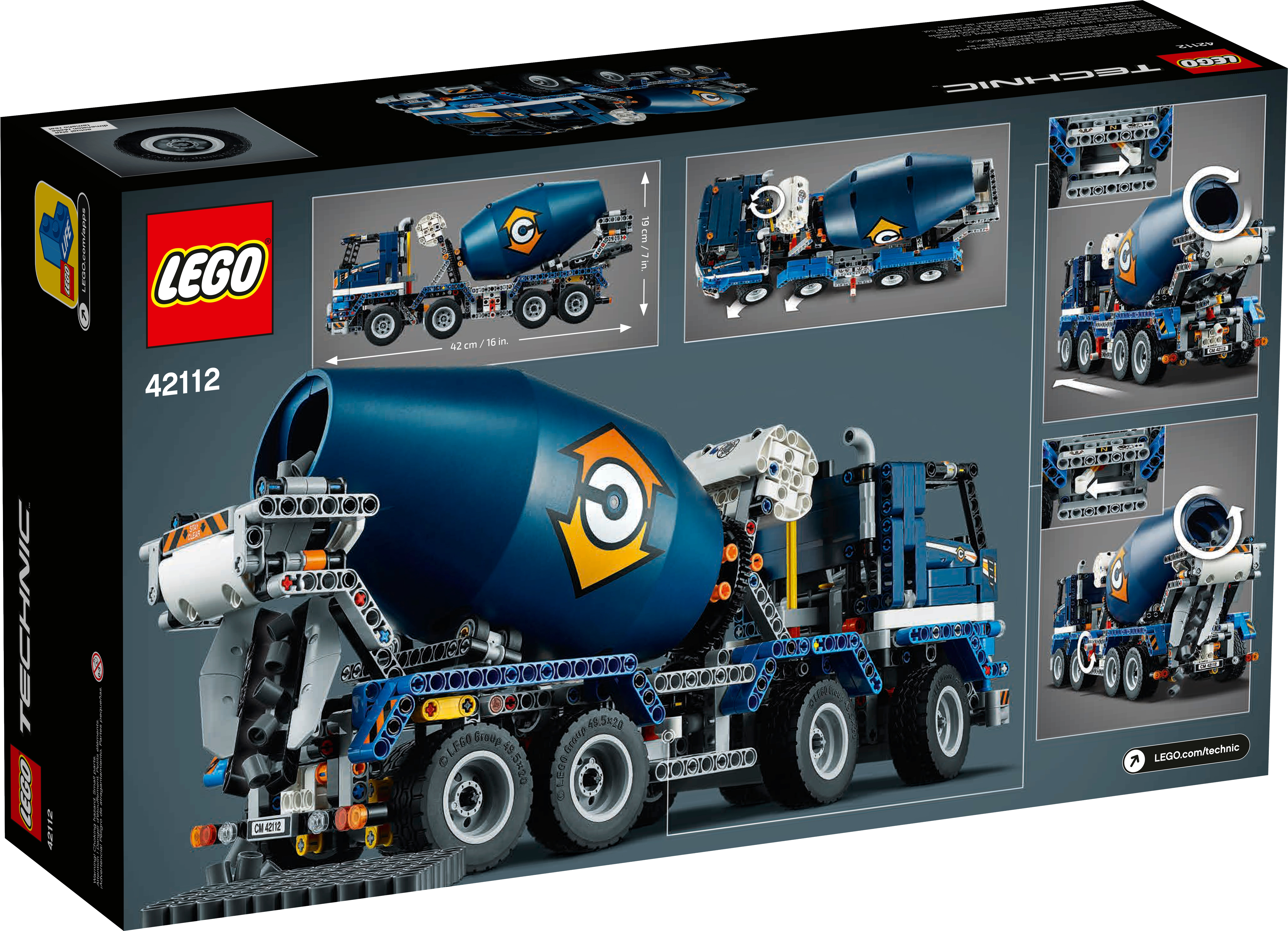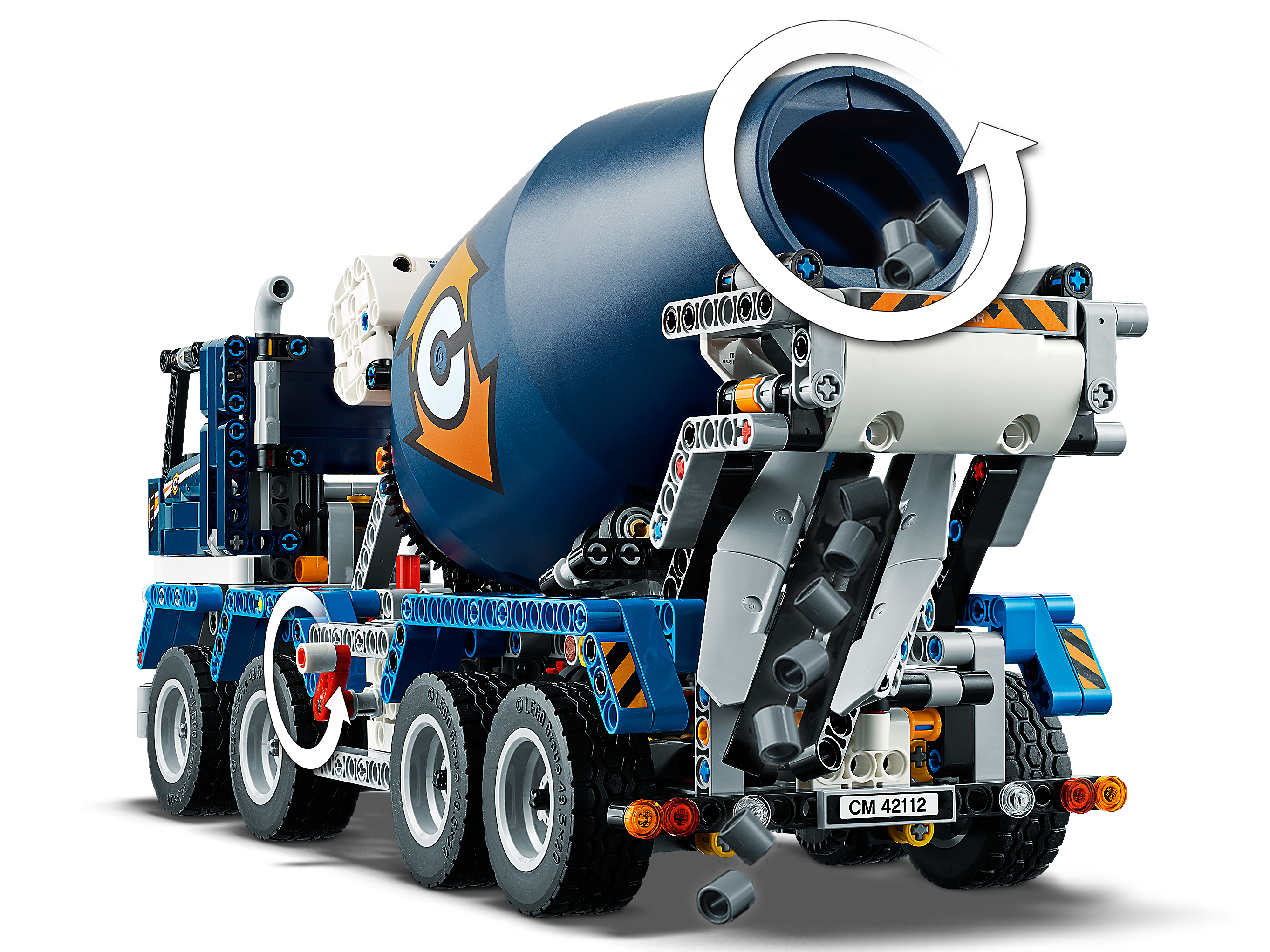Bring the world of construction to life for kids who love to see how things work. Youngsters with a passion for vehicles will enjoy building this LEGO® Technic™ Concrete Mixer Truck (42112). With 8 robust wheels, a moving motor, opening driver’s cab and large mixing drum, it looks just like the real thing. Kids can turn the drum manually or set it to automatic to see it turn as they push the truck. When they turn the drum counterclockwise, they'll see the concrete unload.Creative play at the toy construction siteImaginative role play is easy with this construction toy building set. The truck comes with 100 1x1 LEGO bricks to use as the concrete. Kids can turn the bricks in the blender then use the handle to control the funnel and pour the concrete into position.Advanced building kits for kidsLEGO Technic model building kits are ideal for LEGO fans ready for a new challenge. These vehicles look and move like the real thing, so kids will love playing with their creations.Kids who love construction vehicle playsets will discover lots of cool functions in this LEGO® Technic™ Concrete Mixer Truck (42112). With a rotating mixer drum, this model looks and moves just like the real thing.With 1,163 pieces, kids will enjoy a challenging build before exploring all the features of the concrete mixer truck, including 100 1x1 LEGO® system bricks to use as the concrete.Turn the drum manually to mix the concrete or set it to automatic and see the mixer rotate as the truck drives along. Turn the drum counterclockwise to unload the concrete, using the funnel to guide it.Kids who love concrete truck toys will have lots of fun exploring all the features of this concrete mixer truck construction model kit. It makes a great birthday present or holiday gift for kids aged 10 and up.The concrete truck toy measures over 16” (42cm) long, 7” (19cm) high and 4” (12cm) wide, making it ideal for creative play.No batteries are required for this construction toy so the fun starts right away and never slows down.Printed instructions are included for this concrete truck toy LEGO® Technic™ building set for kids.LEGO® Technic™ model kits give kids a great introduction to engineering. With awesome designs and realistic functions, LEGO Technic offers advanced building kits packed with realistic features.LEGO® Technic™ sets meet the highest industry standards, which ensures each of these building sets for kids connects easily every time.LEGO® Technic™ sets are thoroughly tested to make sure each one meets the highest global safety and quality standards.
