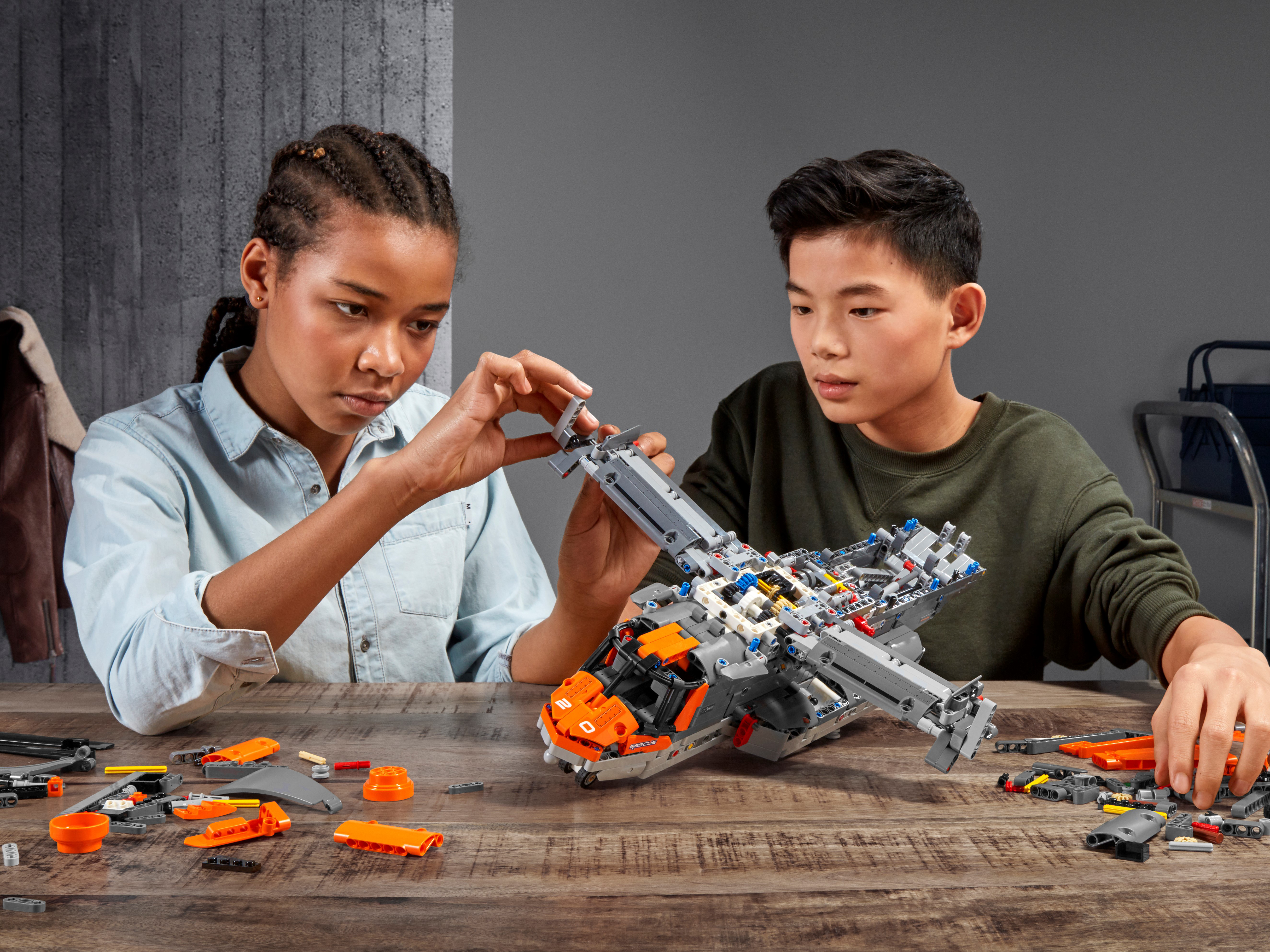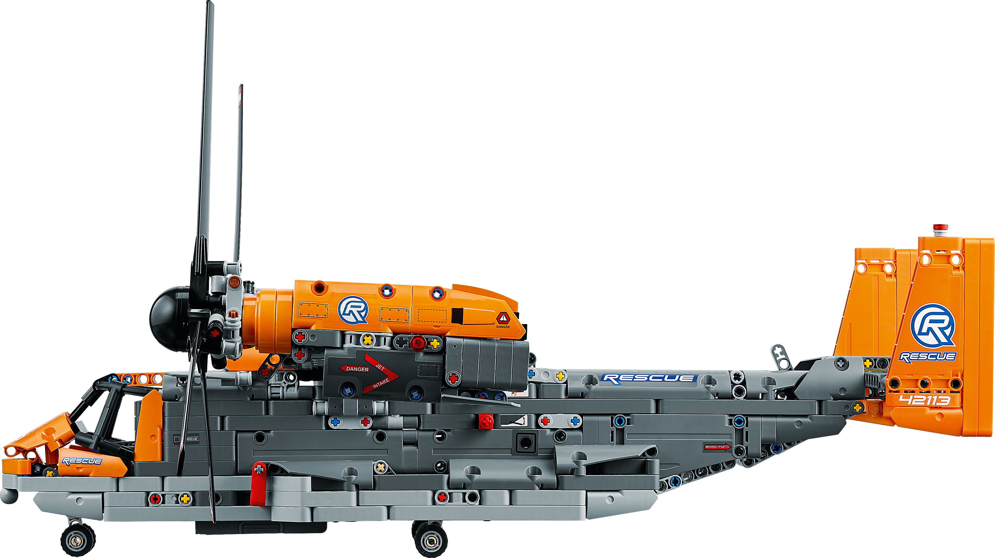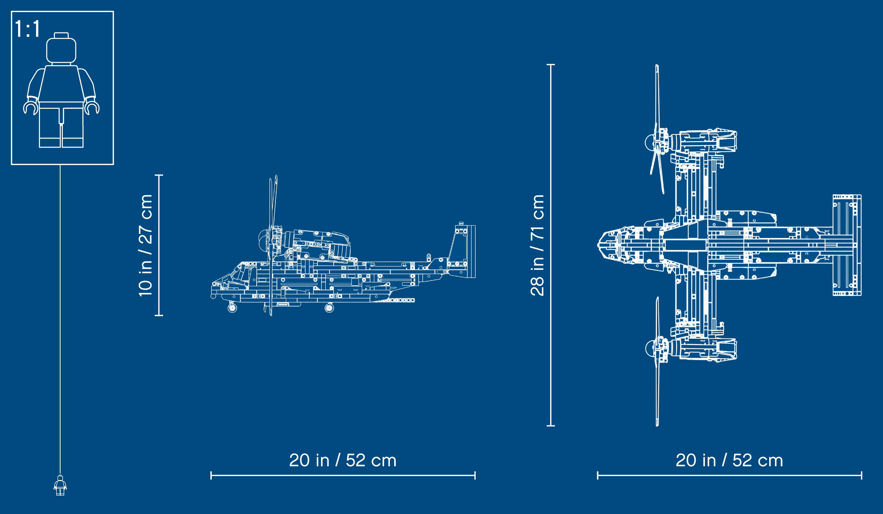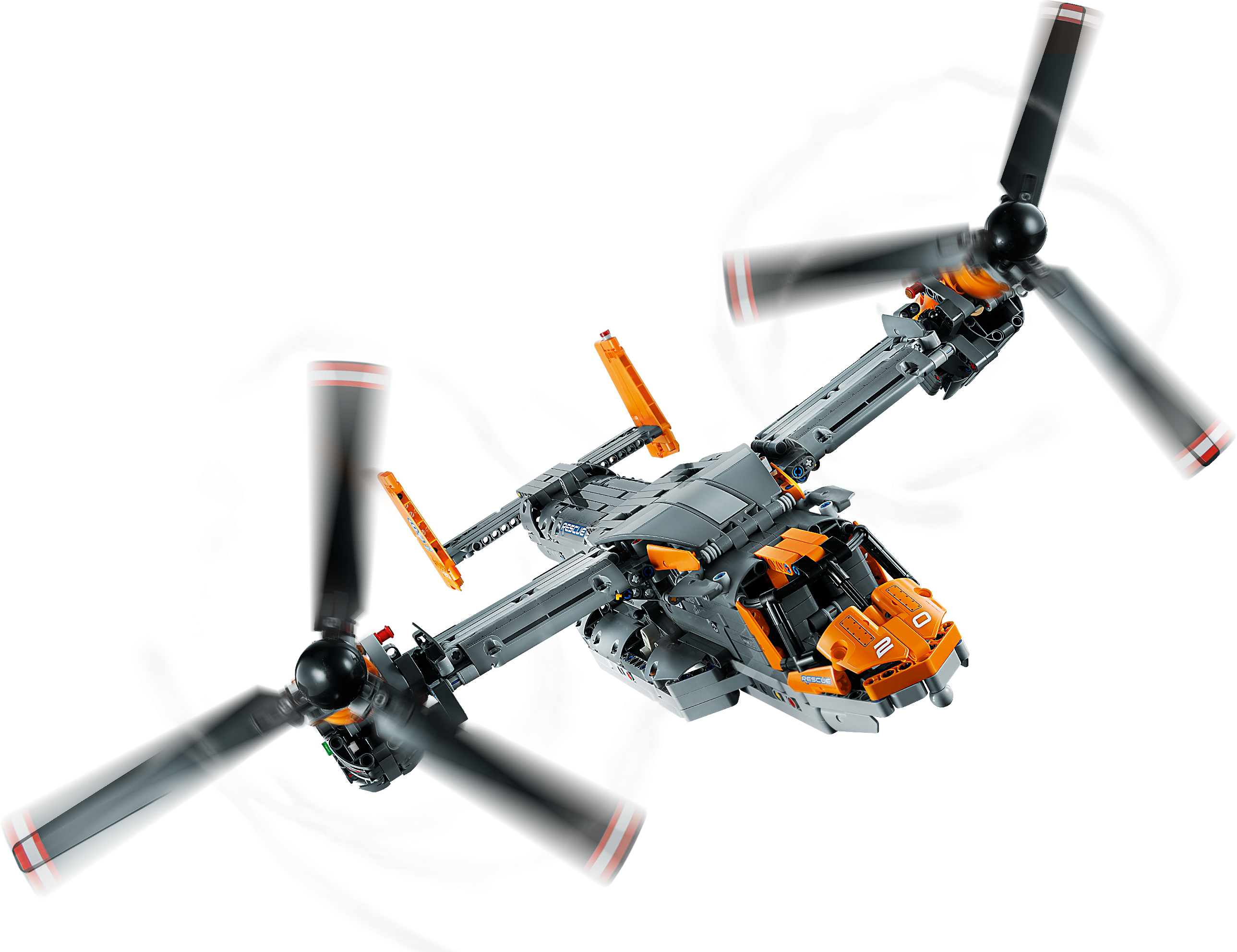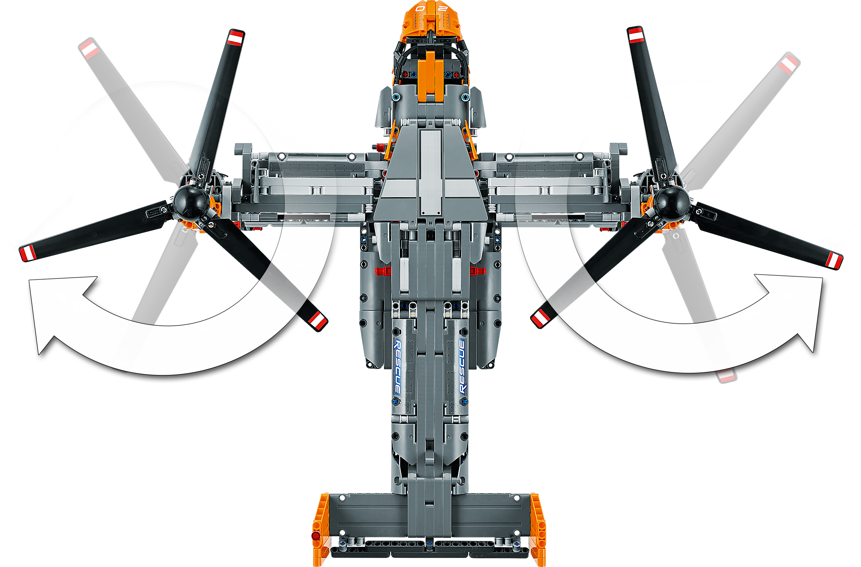 Packed with realistic details for imaginative play Kids will love exploring this feature-packed aircraft. Power up your build with the included battery box and large motor to bring the toy aircraft model to life. Control the retractable landing gear and rotate the nacelles to switch from vertical take-off mode to flight mode. Authentic details include a gearbox with four different functions, plus an opening cargo bay door and spinning propellers.