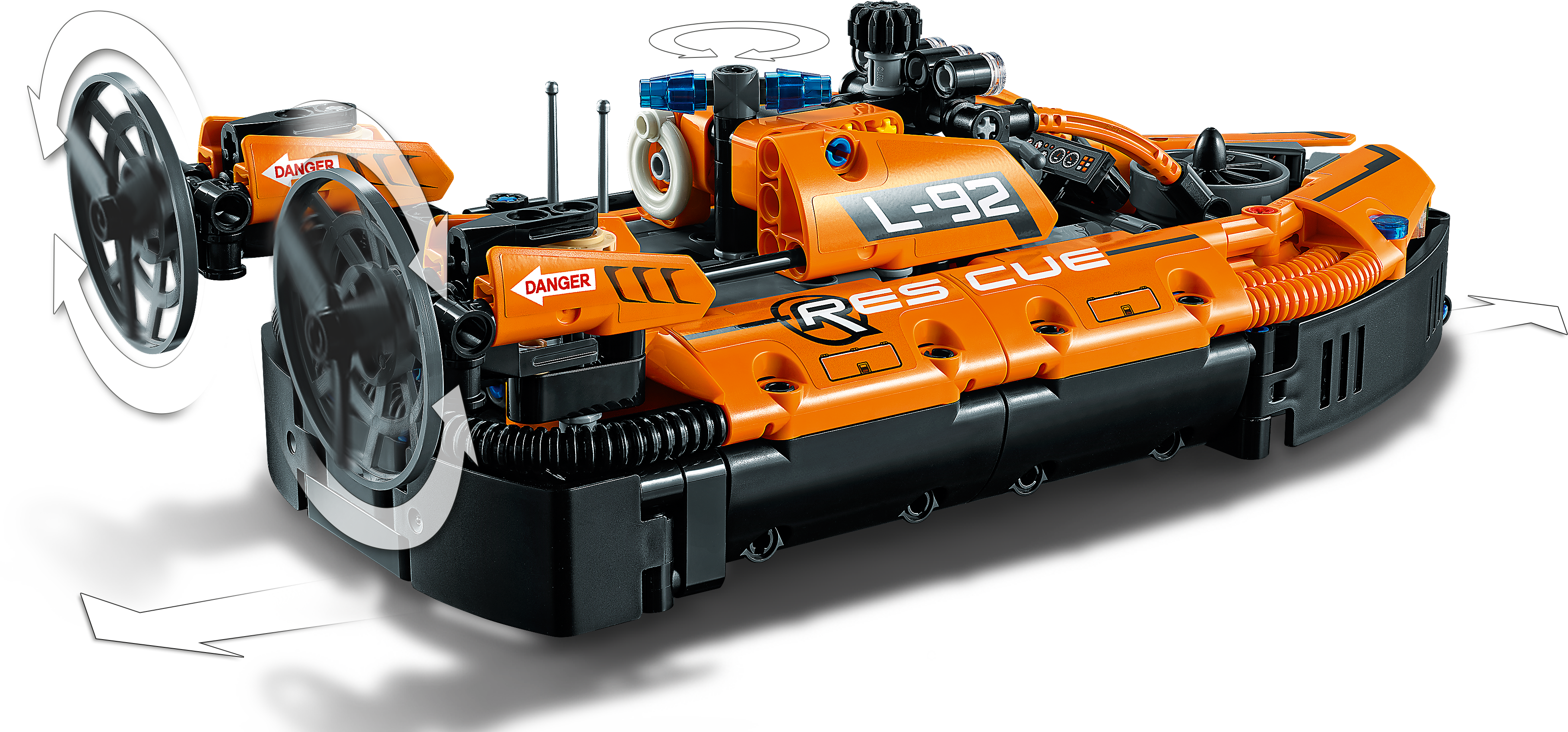 Check out all the cool features, including the ‘hover’ effect, turning fans, cockpit and rotating warning light, just like on a real hovercraft air cushion vehicle (ACV).