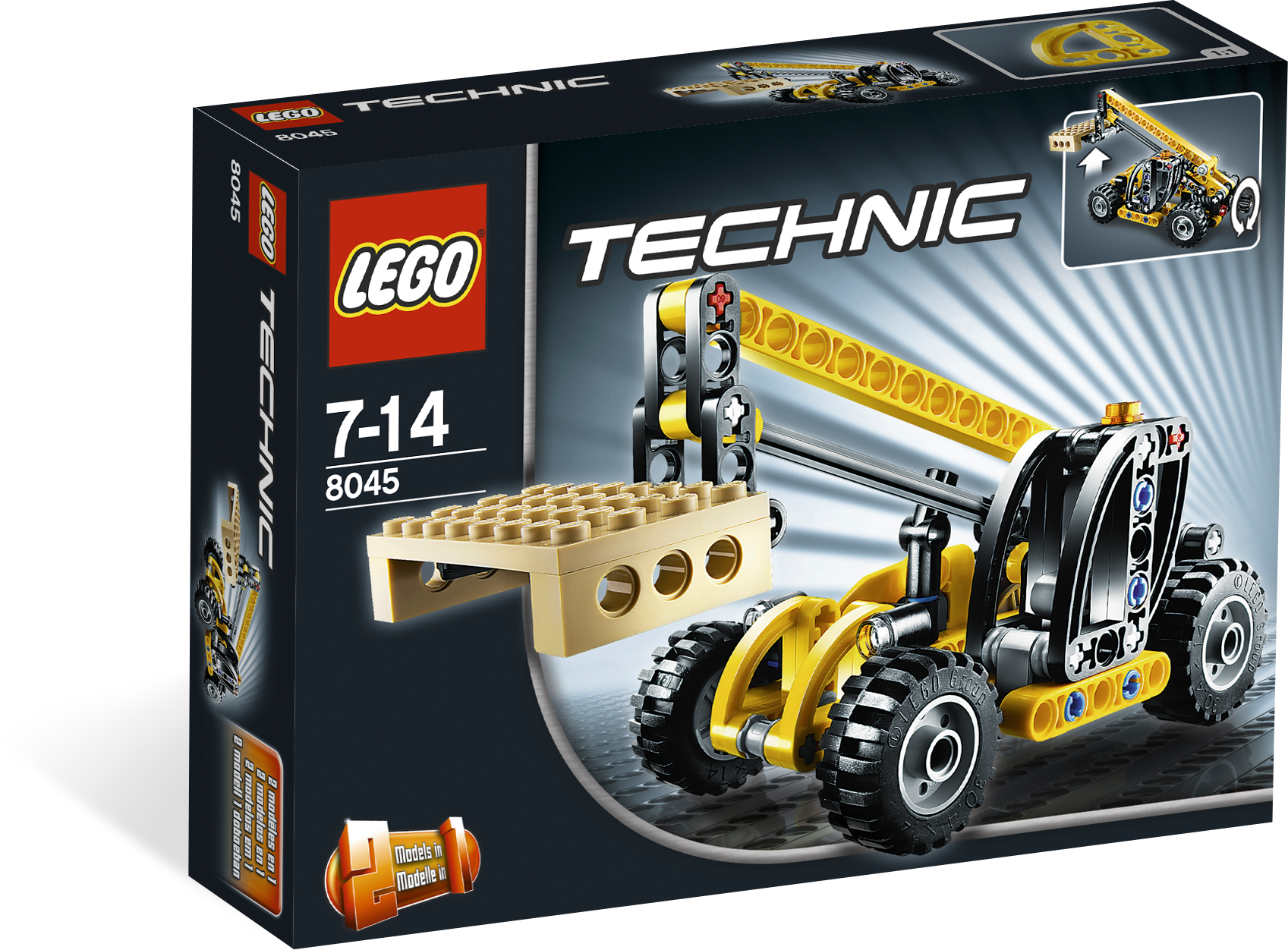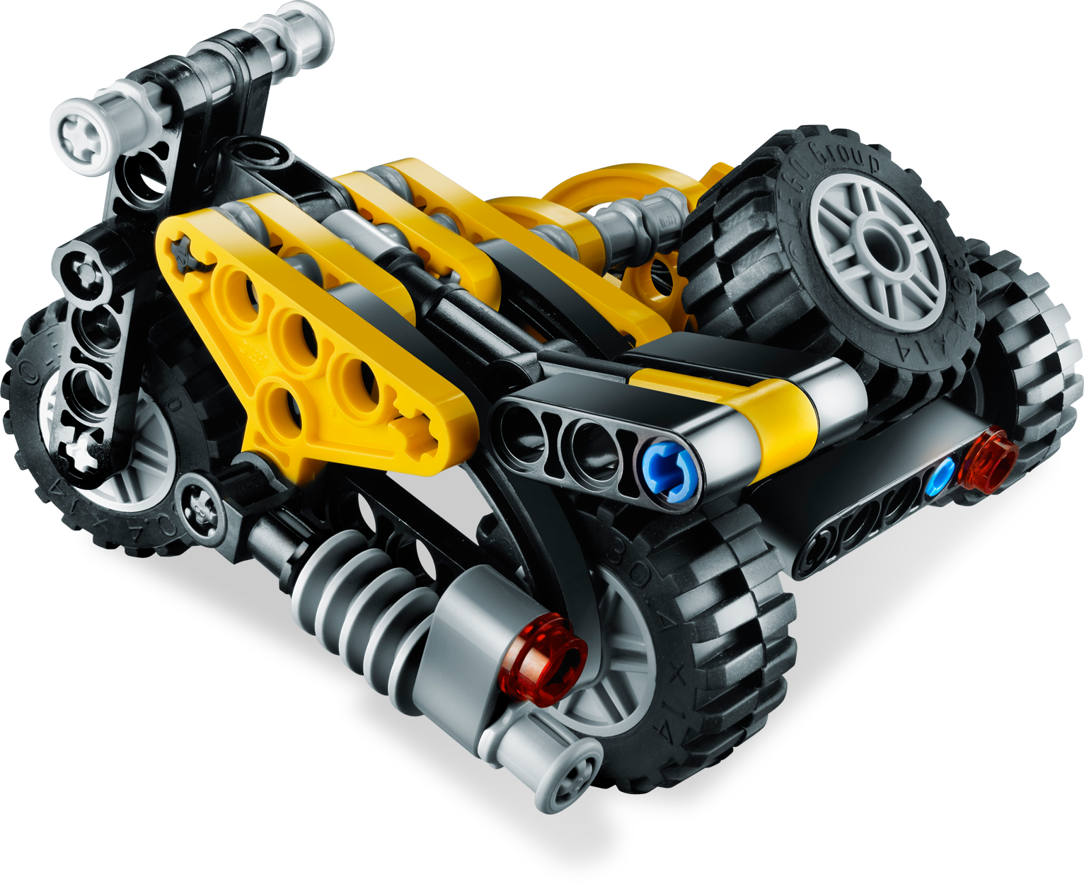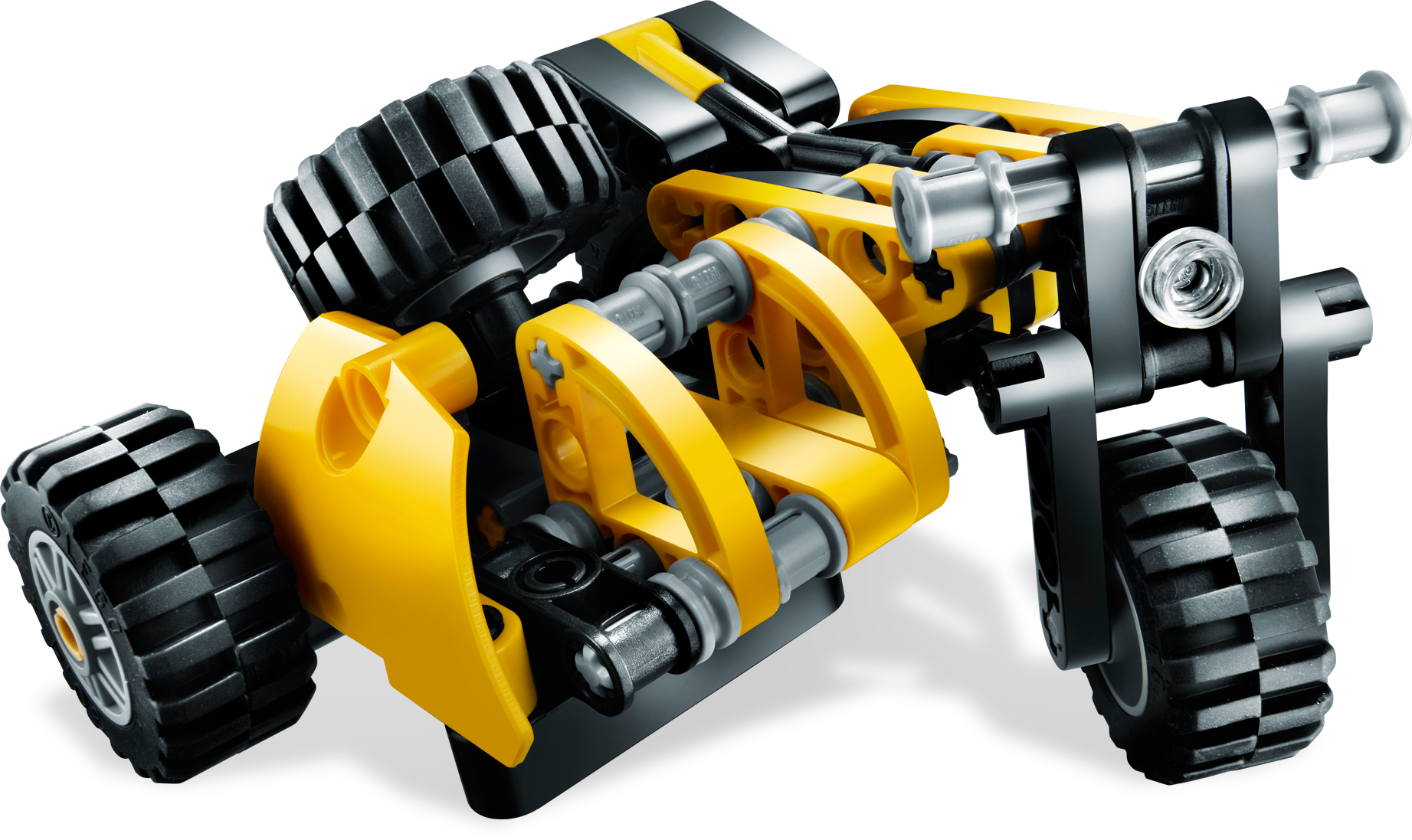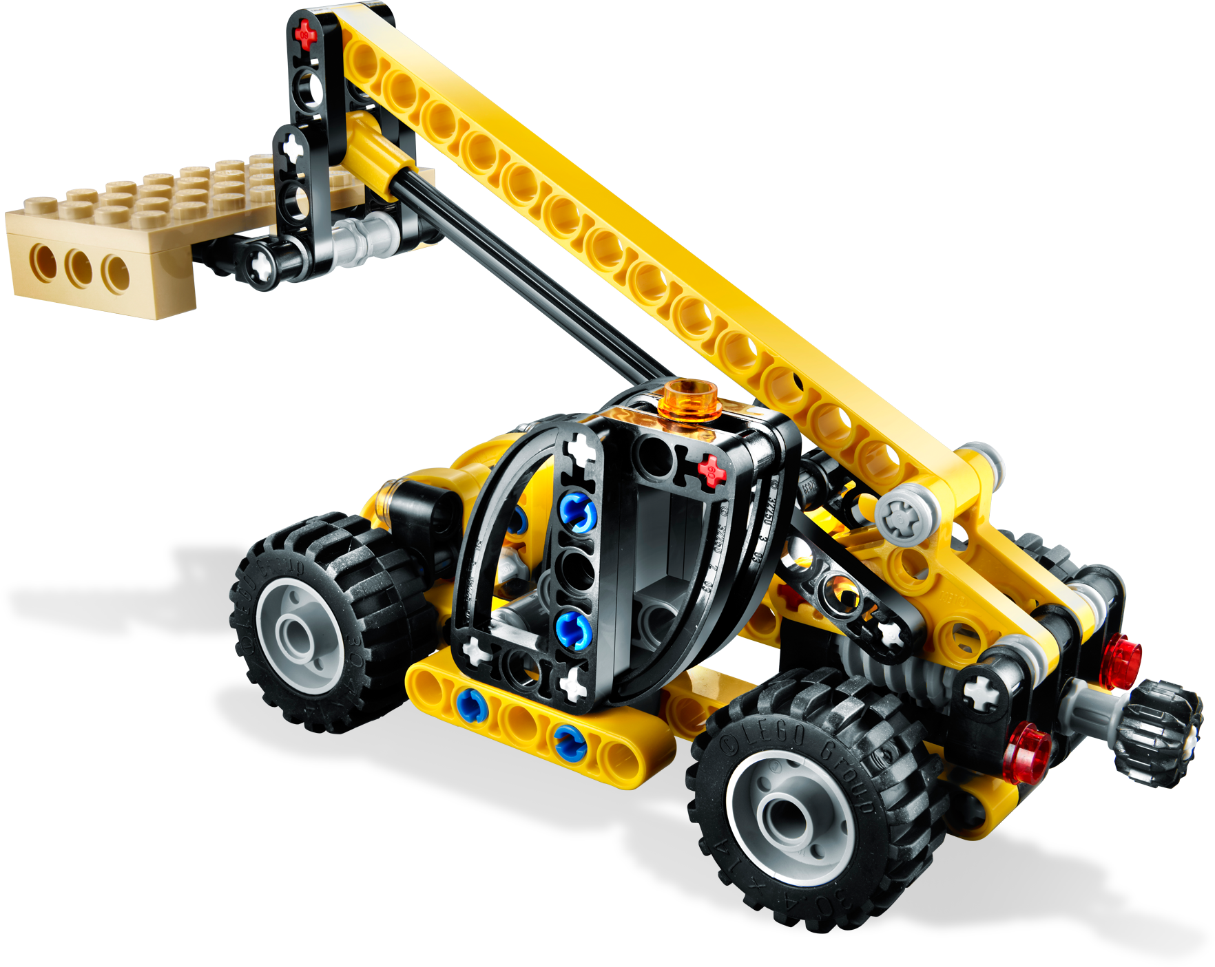 Use the rear-mounted control knob to raise and lower the Mini Telehandler’s fully-functional boom and forks. For even more fun, you can rebuild it into an authentic LEGO® TECHNIC motorcycle with side car! • Rebuild into motorcycle!