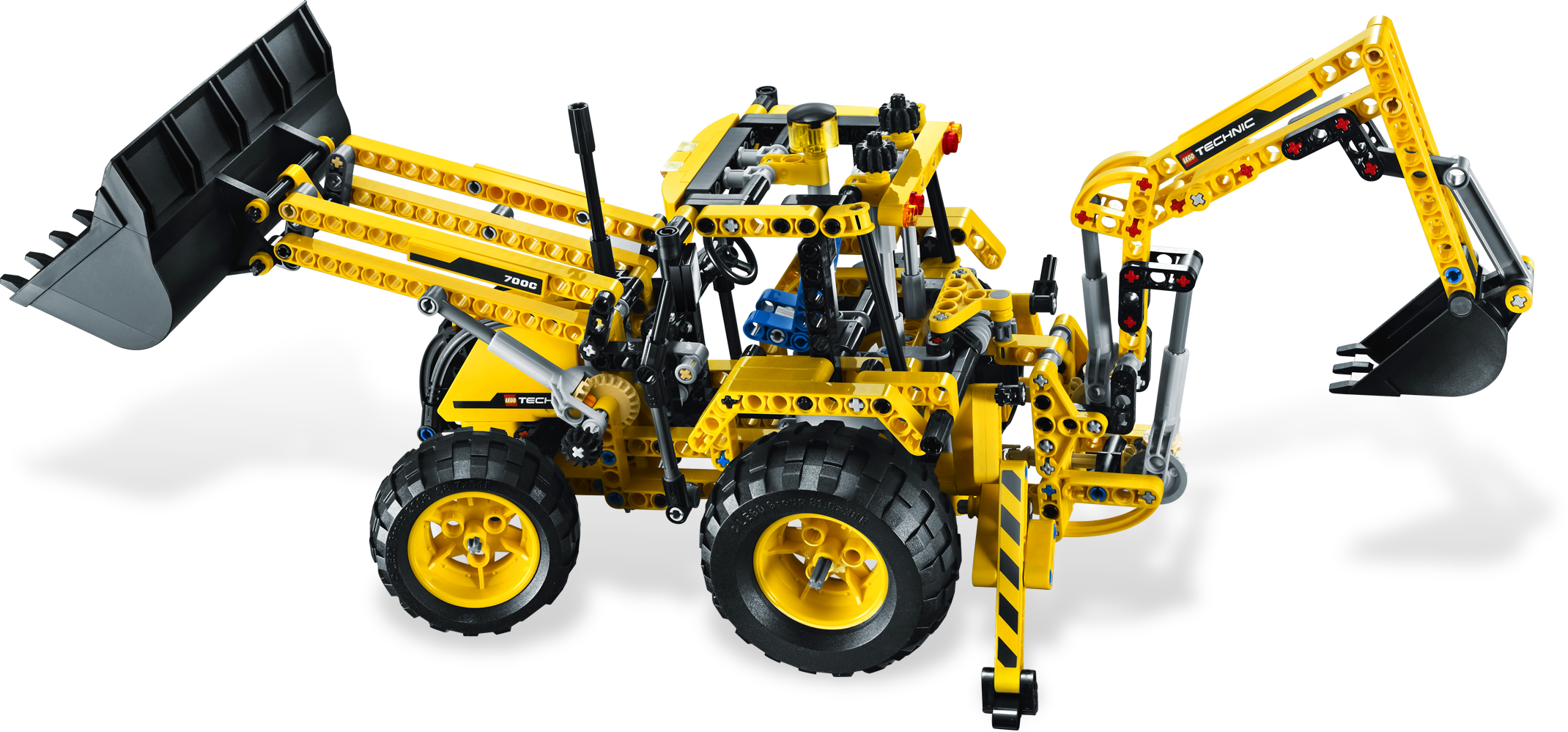Dig with ease using the backhoe loader’s gear-actuated front bucket and back hoe. Twist them left to right! For extra demanding jobs, extend the outriggers to make sure this 4-wheeled workhorse is stabilized! Rebuild into a log handler.