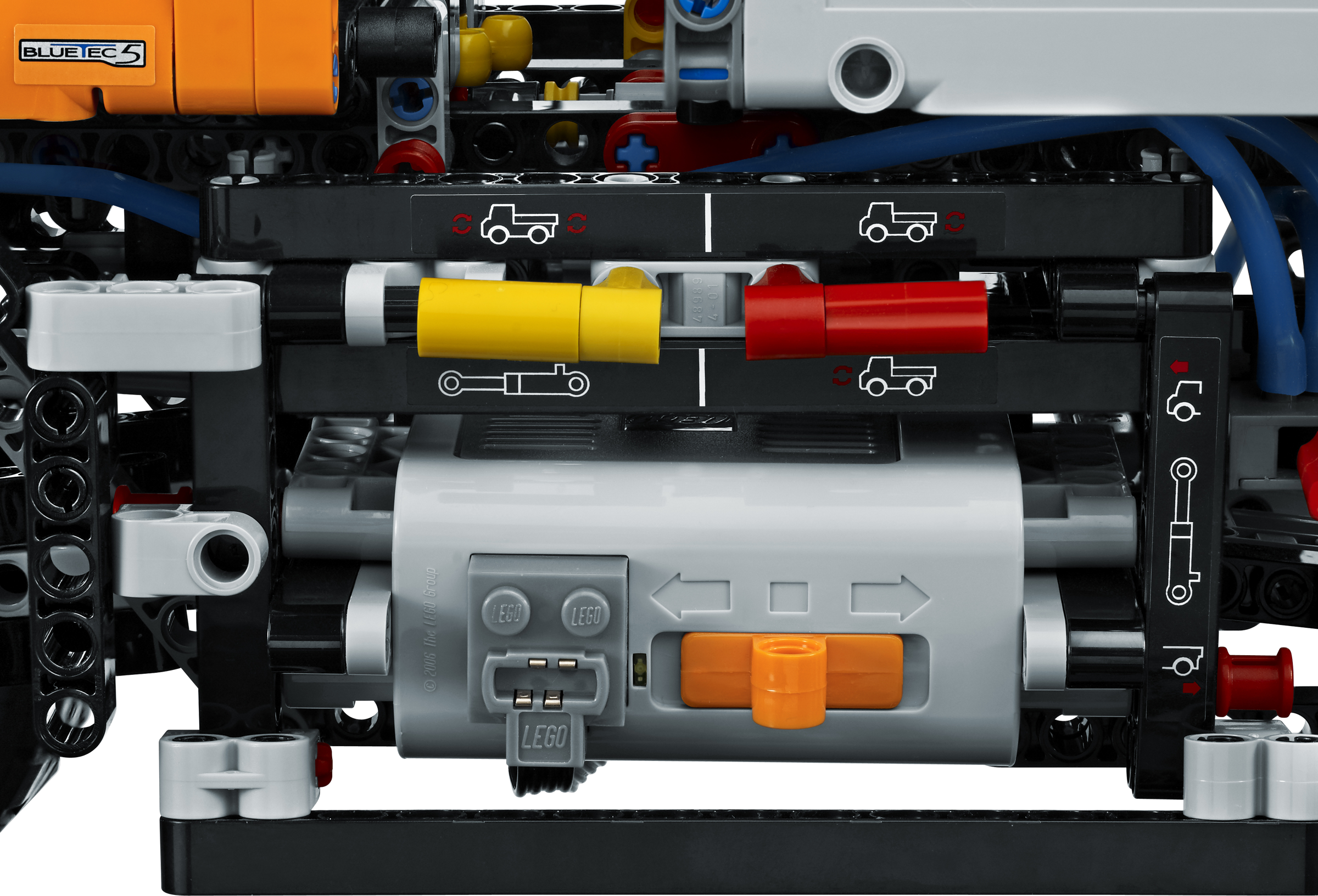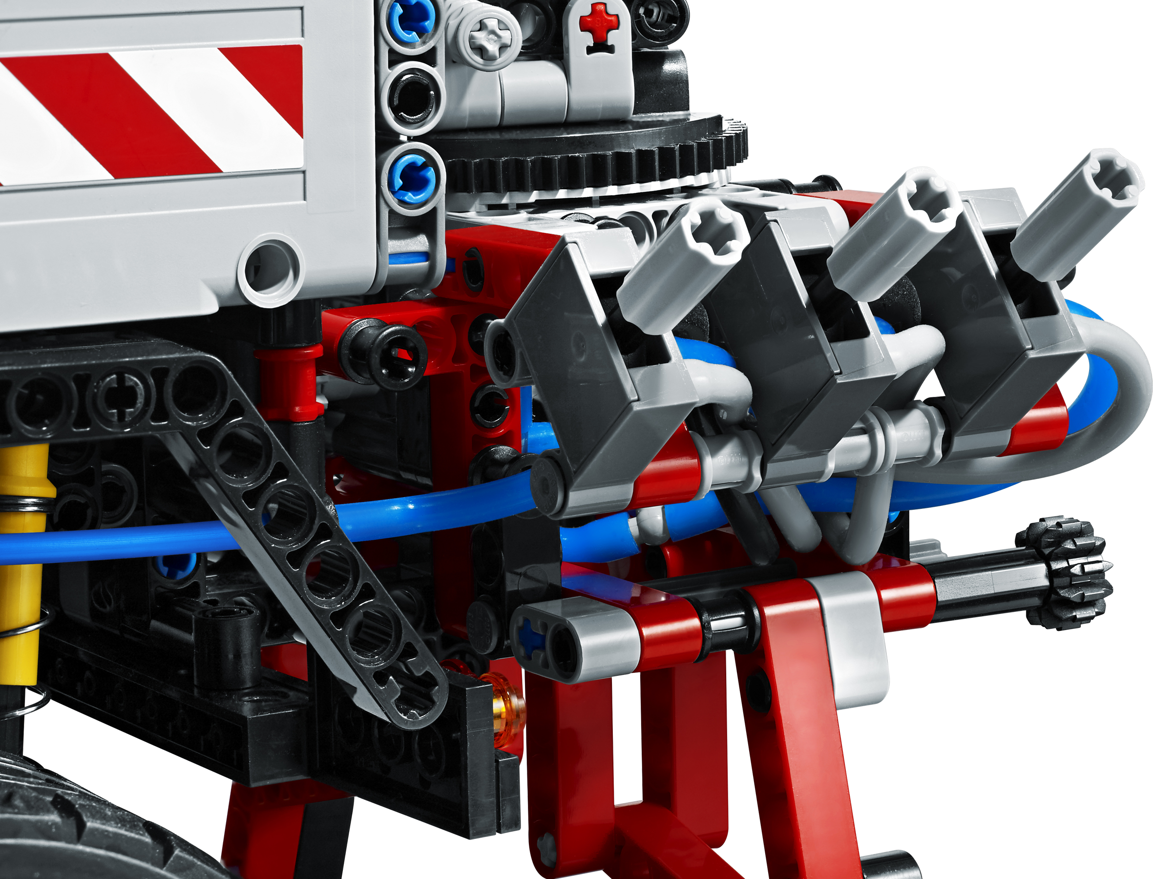 Features pneumatically-powered, articulated crane with working grabber and winch powered by LEGO® Power Functions